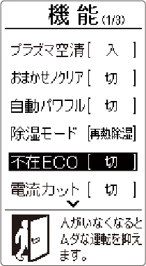 ▶ 不在 ECOが働く設定は、一度設定すると、「切」に設定するまで有効です。