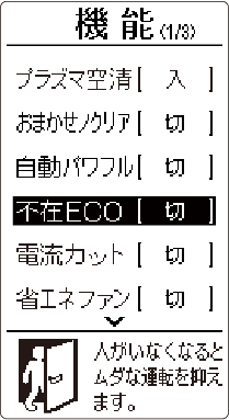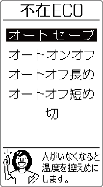 ▶ 不在 ECOが働く設定は、一度設定すると、「切」に設定するまで有効です。