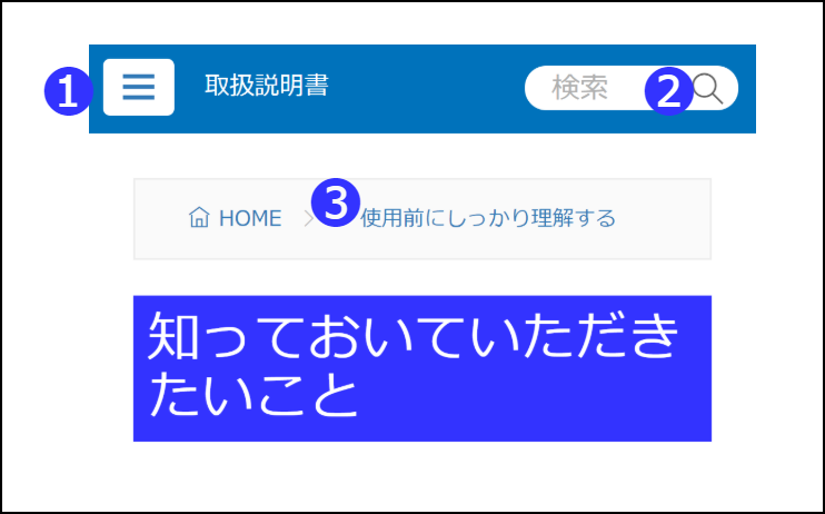 もくじの一覧が表示されます。(本取扱説明書をスマートフォンで閲覧する場合、アイコンをタップすると表示されます。)