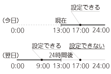 - 現在時刻に近いタイマーが先に動作します。(順番を指定することはできません。)