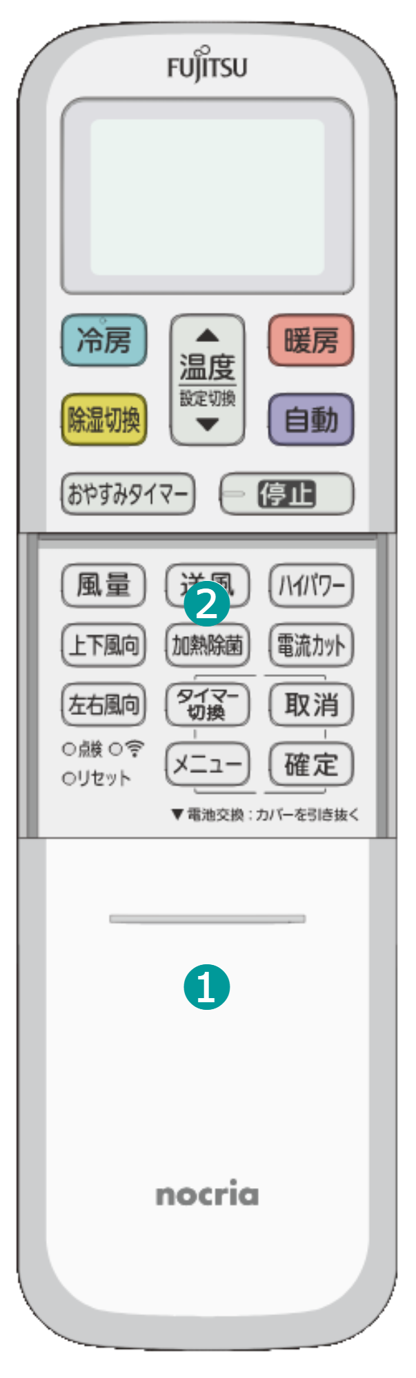 加熱除菌は、室内機内部の熱交換器(アルミフィン)を加熱し、除菌します。冷房・除湿運転停止後にご使用ください。