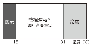 運転停止中に、エアコンがお部屋の状況や外気温を判断し、自動で運転を行います。