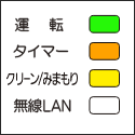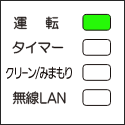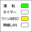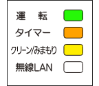 運転ランプ(緑)、タイマーランプ(橙)、クリーン/みまもりランプ(黄)が点灯 |