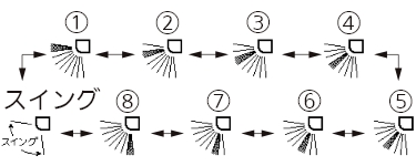 - 上下スイングと左右スイングを設定すると、上下スイングと左右スイングを組み合わせてスイングします。