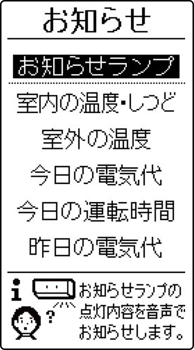 お部屋の状態や電気代、お知らせランプの点灯/点滅内容を、音声で確認することができます。