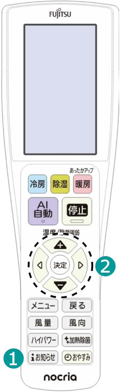 ※0.5℃ずつ温度を設定できますが、お知らせは1℃ごとになります。 ▶ 音声案内の例 |