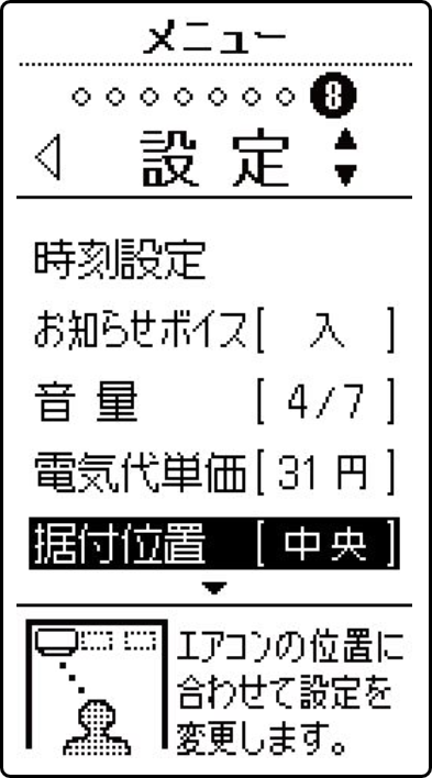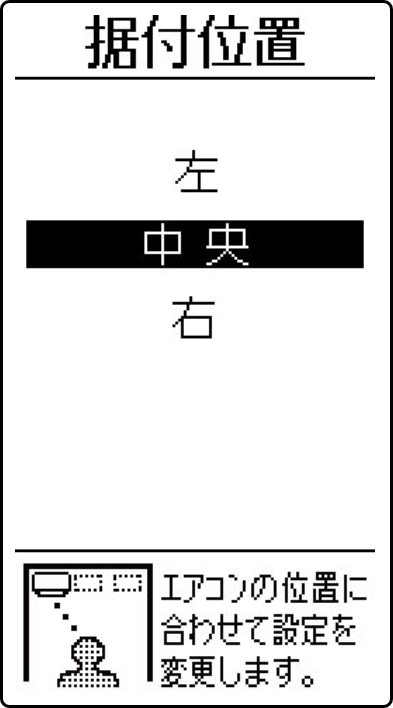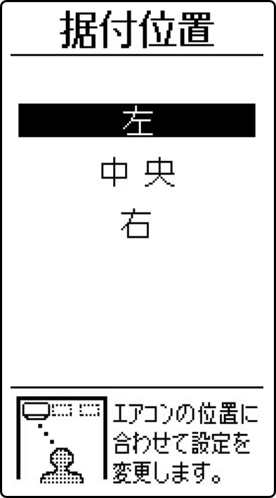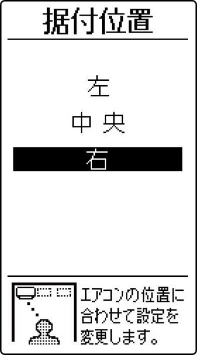室内機が信号を受信すると、受信音が鳴り、音声案内でお知らせします。 (例)室内機を左に据え付けた場合 『ピピッ 左側に設定しました。センサーを右に向けてください。』 ※「人感センサーと据付位置を設定する」で決めた人感センサーの向きと音声案内の向きがあっていることを確認してください。
