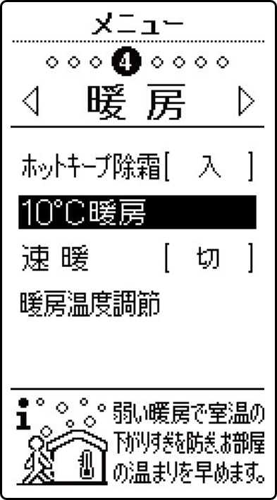 弱い暖房運転をすることで、人がいない間にお部屋の温度が下がりすぎるのを抑え、帰宅後や起床時の暖房の立ち上がりを早めます。