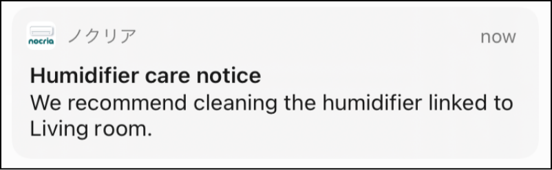 A push notification is sent when water supply or care is necessary for the humidifier linked to the air conditioner.