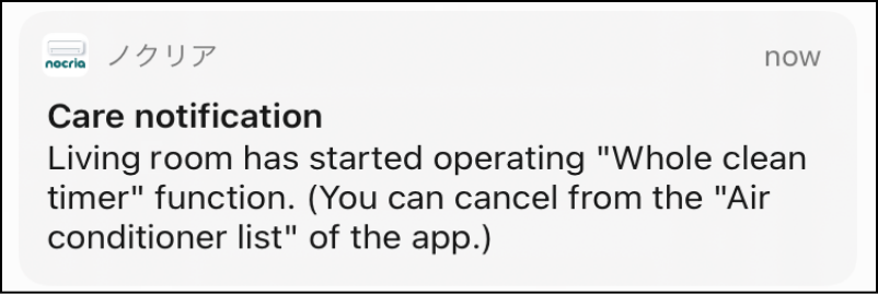 When the air conditioner is set to a Whole clean timer or Mold suppression timer, a push notification is sent when a function has been operated.