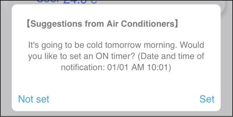 Changes in temperature are predicted based on the weather information around your area, and then timer-setting suggestions are made.