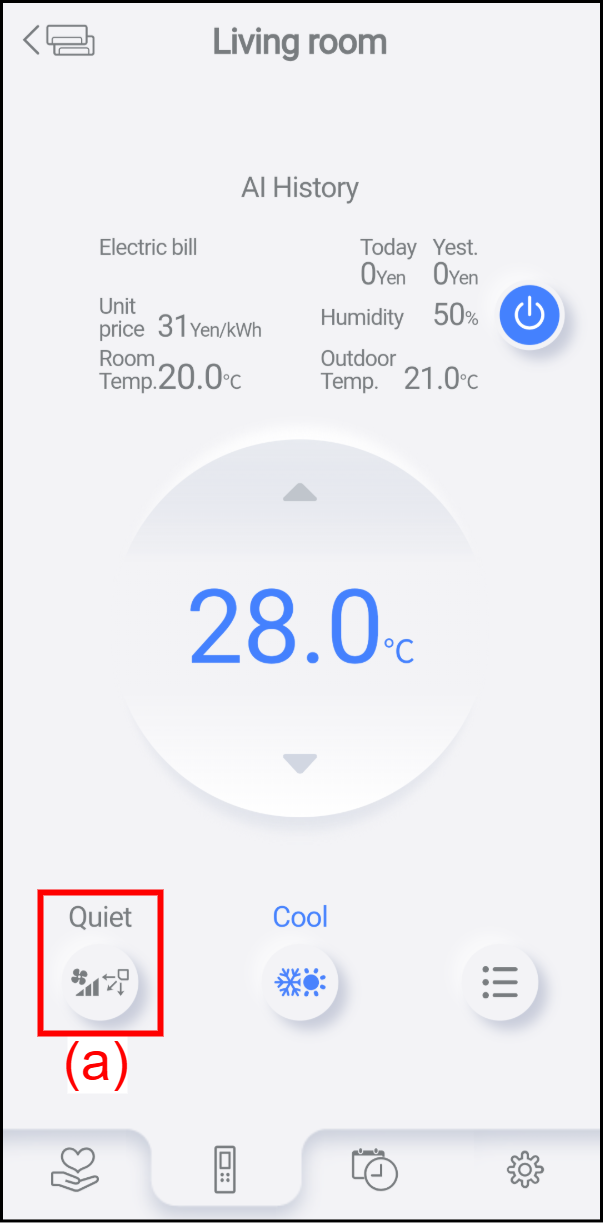 “Fan Speed”, “Airflow Direction”, “Swing and Wide”, and “Comfort airflow” can be set. *Models equipped with side fans enables “Individual fan” to be set. |