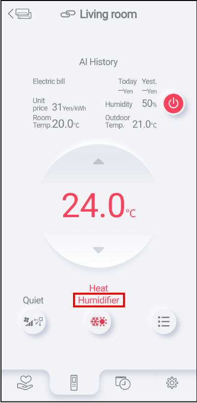 When the registered air conditioner is linked to the humidifier, the humidifier can be operated/stopped from the nocria app.