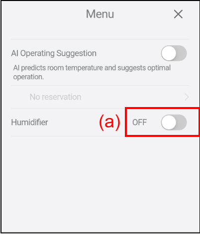 OFF | The humidifier stops operation. |