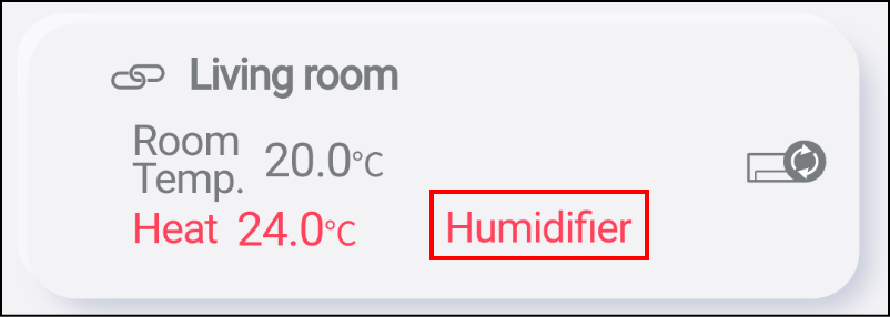 When the humidifier is operating, “Humidifier” is displayed in the operation mode shown in Air conditioner list screen and Operation screen.