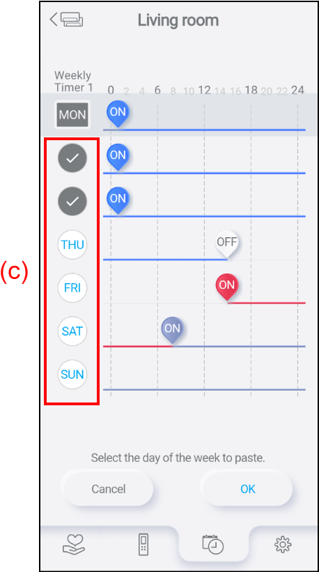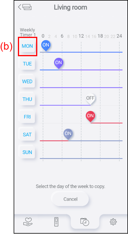- Tap [Copy the schedule] (a) to begin copying the timer settings.