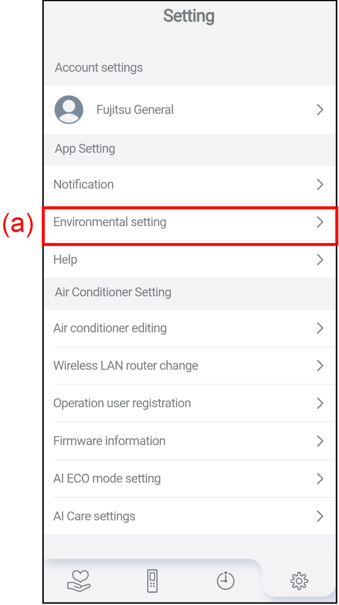 Tap (a) to display the Environmental setting screen.