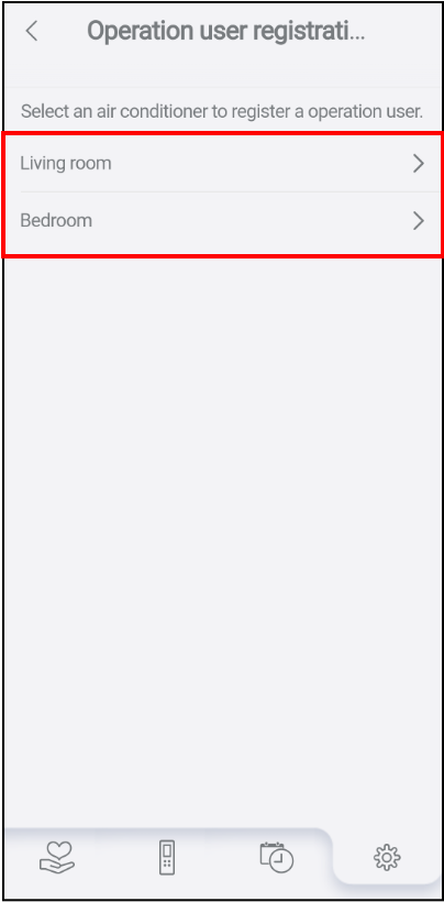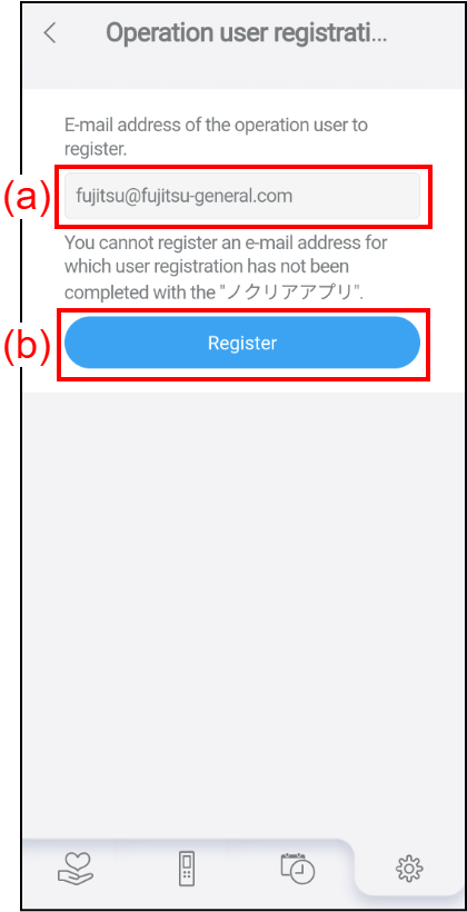 is the selected air conditioner. - Tap [Register] (b) to copy the operation user of the selected air conditioner.