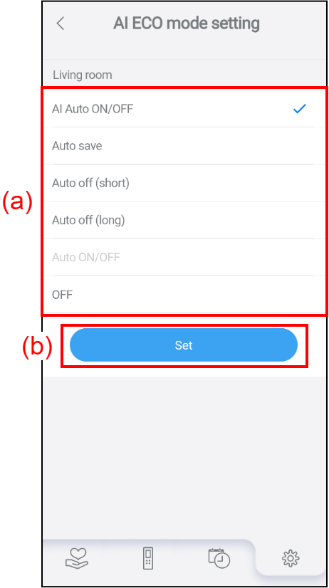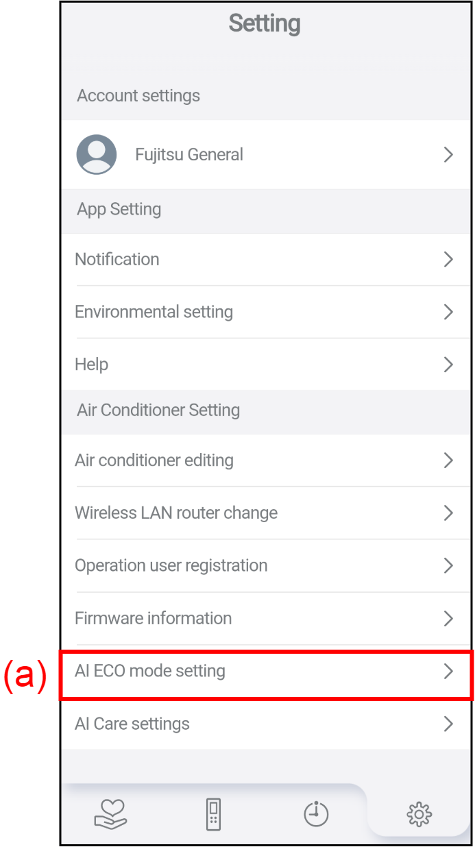 Tap (a) to display the AI ECO mode setting screen.