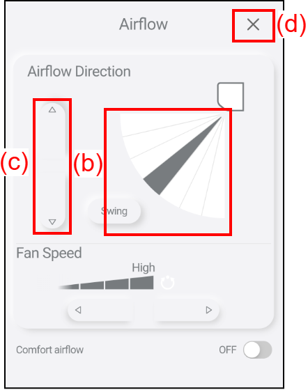 When the following screen is displayed, tap (b) to set “Comfort airflow” to “OFF.”