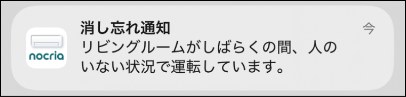 長時間お部屋に人がいない場合、運転中であることをプッシュ通知でお知らせします。