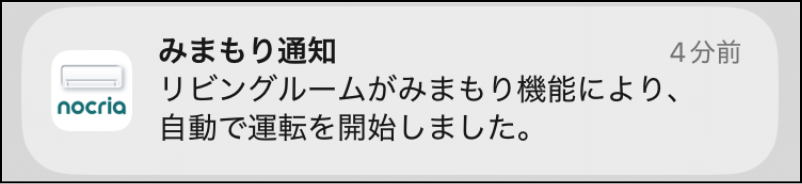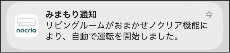 エアコンの「みまもり」「おまかせノクリア」を設定すると、お部屋の温度・しつどが変わったときや、機能が動作したことをプッシュ通知でお知らせします。