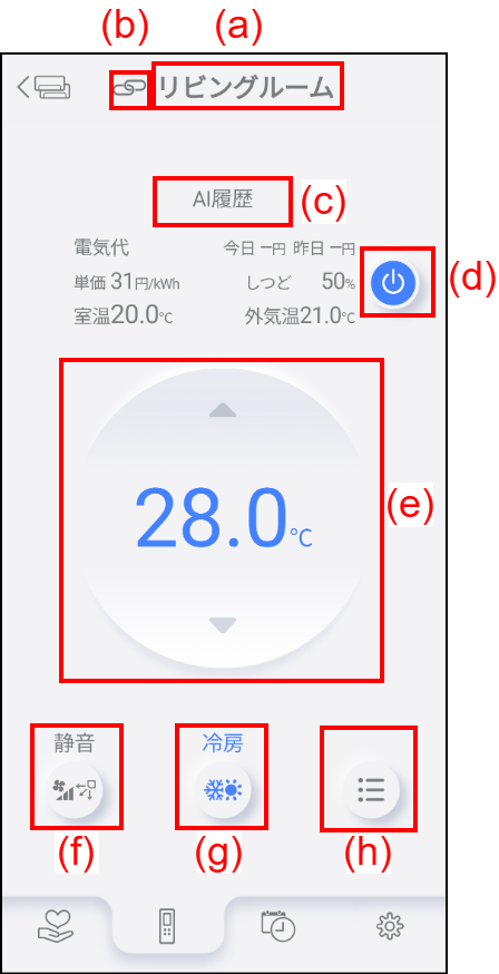 | (c) | タップするとAIによる操作履歴が表示されます。エアコンによっては表示されない場合があります。 |