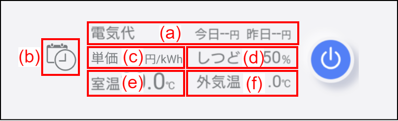 | (c) | 電気代の単価が表示されます。 単価設定を変更したい場合は「エアコン編集」をご覧ください。 |