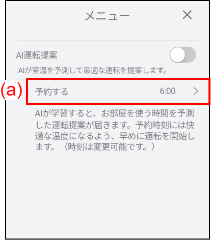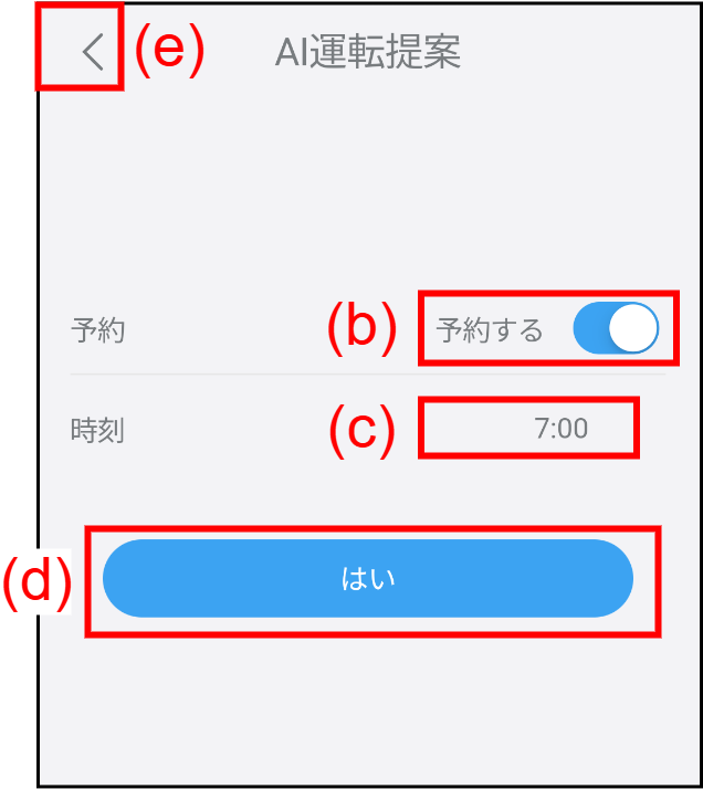 AIからの運転提案があるときは、予約の有効/無効と時刻を変更できます。