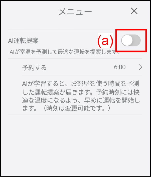 (a) をタップすると、AI運転提案の有効 / 無効が切り替わります。