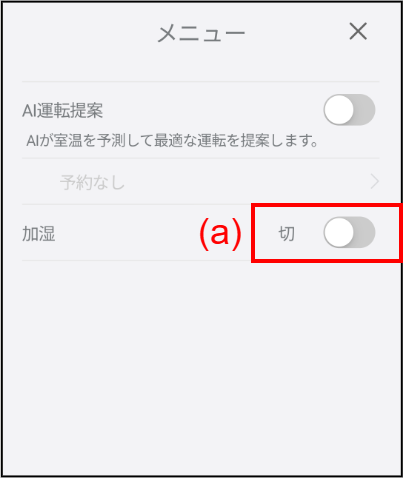 [はい] をタップすると、加湿器の入 / 切が切り替わります。