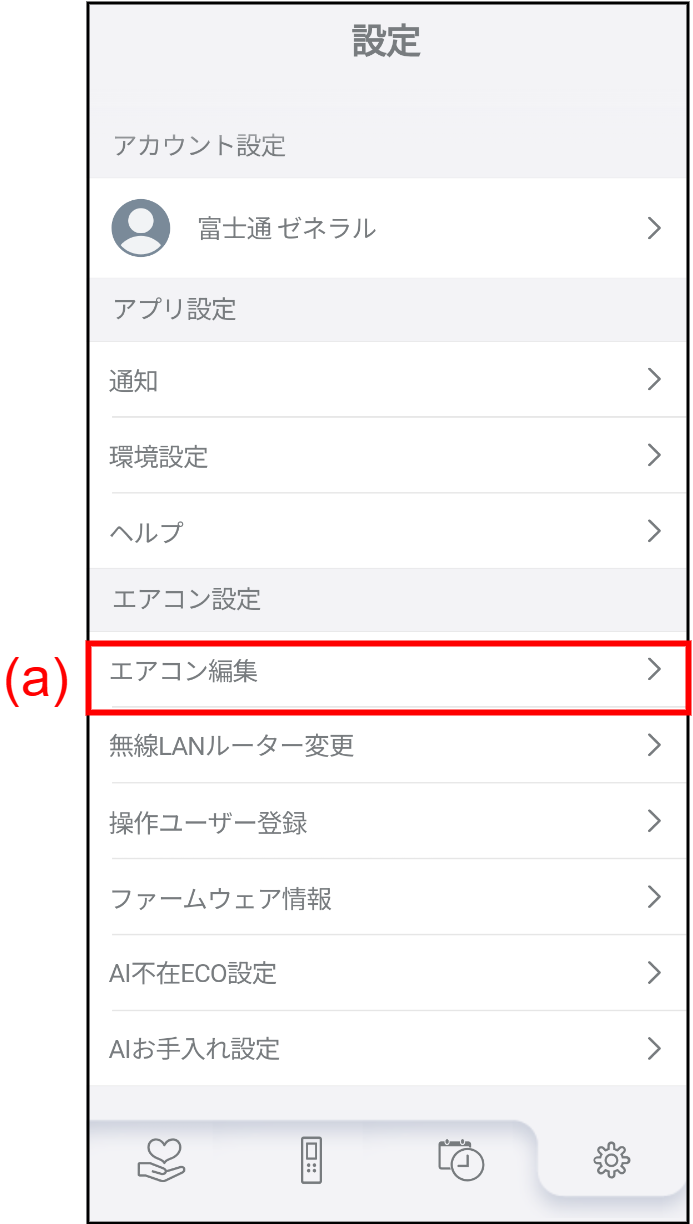 (a) をタップしてエアコン編集画面を表示します。