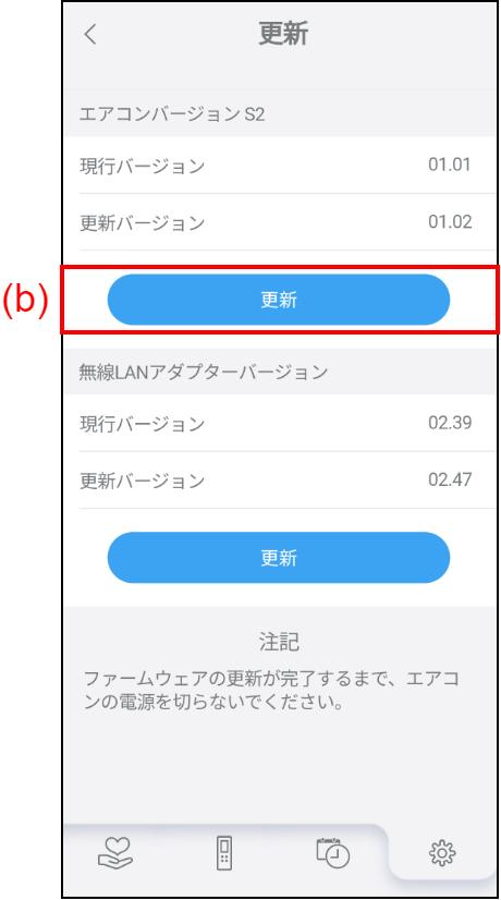 - (b) をタップしてファームウェアアップデートを開始します。