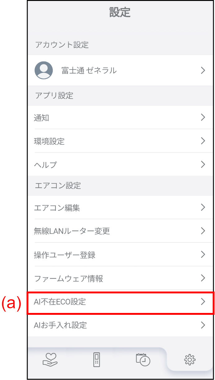 (a) をタップしてAI不在ECO設定画面を表示します。
