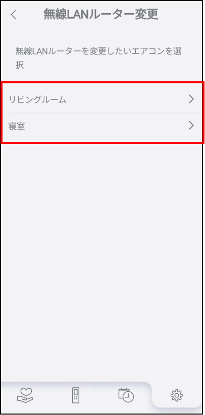エアコン一覧が表示されます。変更したいエアコンをタップして、無線LANルーターの変更を開始します。