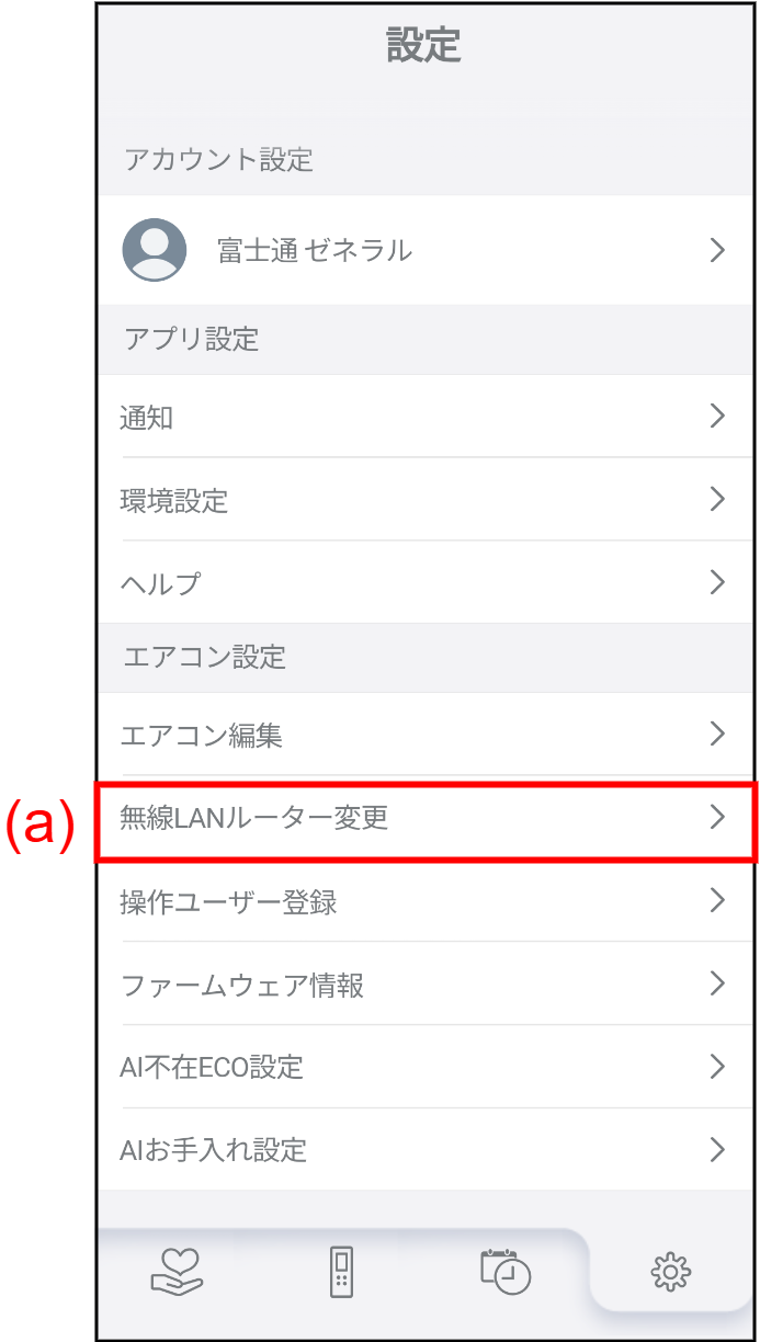 (a) をタップして無線LANルーター変更画面を表示します。