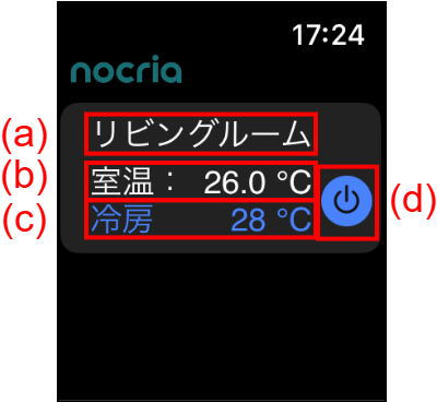 エアコン一覧が表示されない場合は、スマートウォッチの表示にしたがって、スマートフォンから「ノクリアアプリ」を操作してください。 |