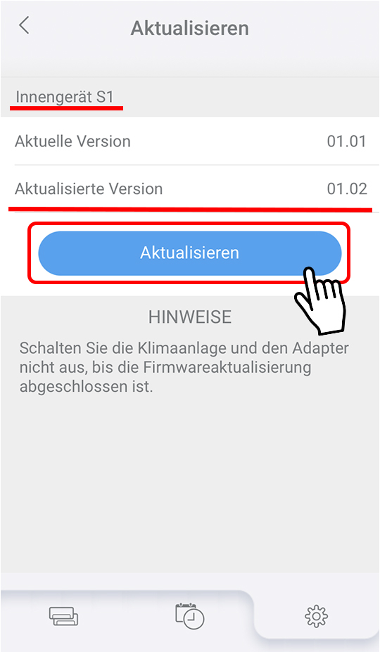 - Die Klimaanlage kann während des Updates nicht verwendet werden.