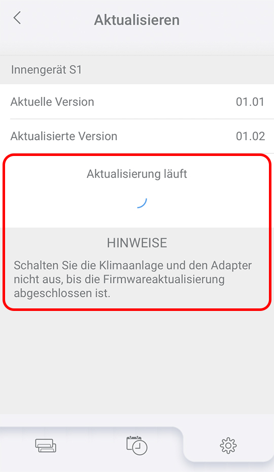 - Die Firmware von Innengerät S1 wird aktualisiert.