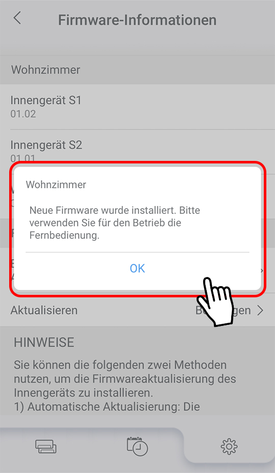 - Wenn Sie über mehrere Innengeräte verfügen, für die ein Update bereitsteht, erhalten Sie mehrere Benachrichtigungen.