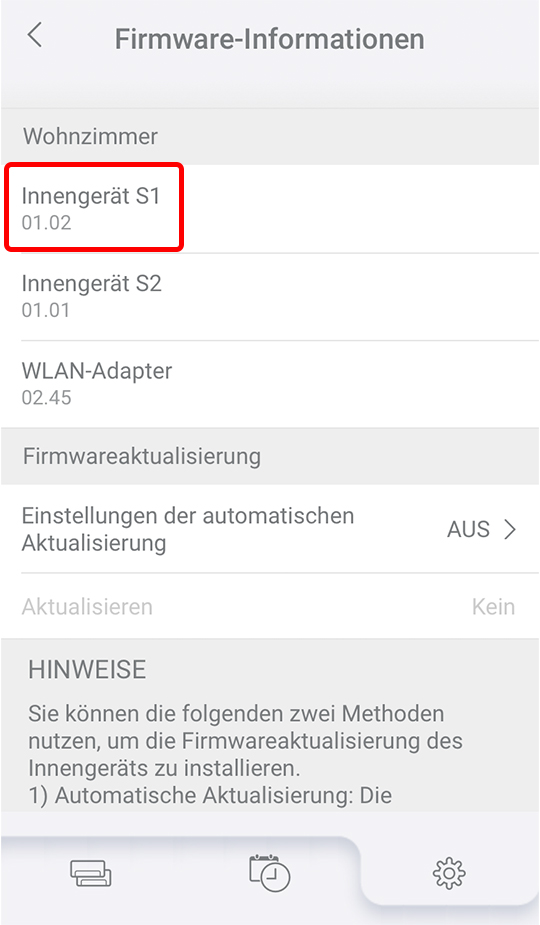 - Das Update gilt nicht für die Firmware von Innengerät S2.