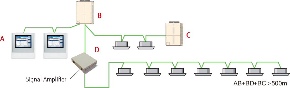 - VRF-võrgusüsteemi saab lisada kuni 8 signaalivõimendit.