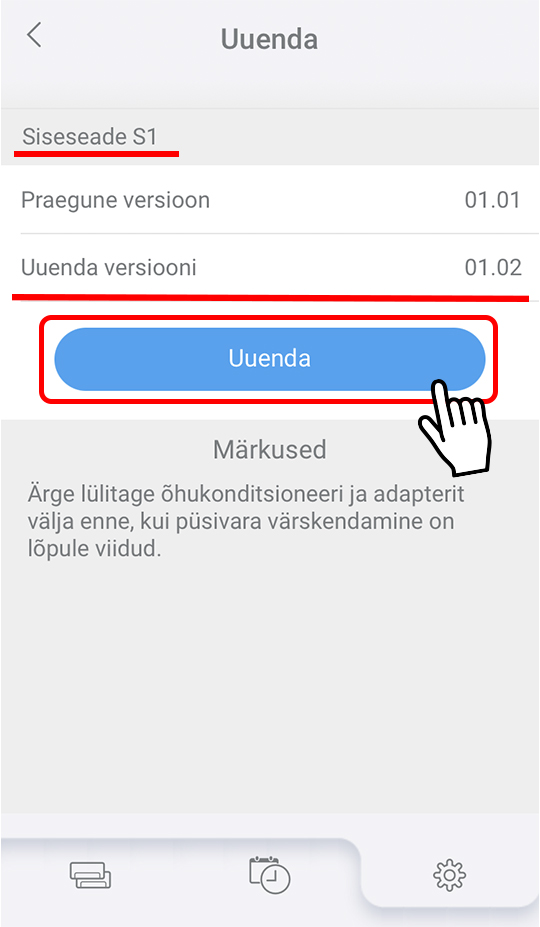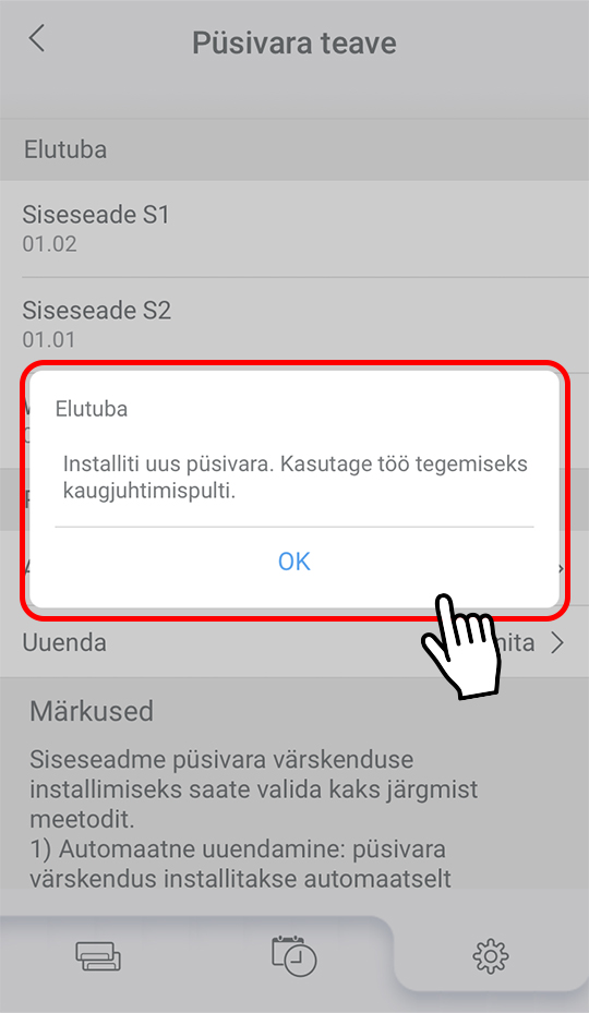 - Siseseadme S1 püsivara uuendatakse.
