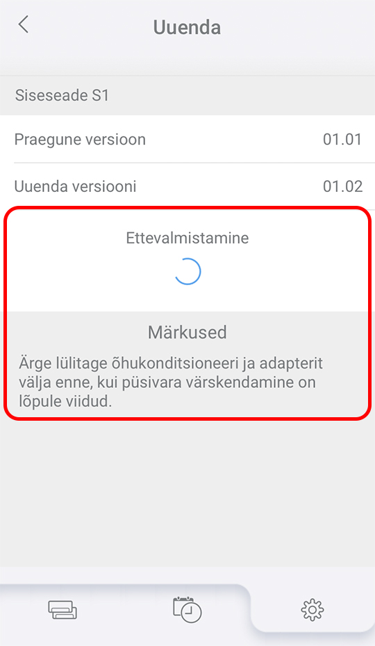 - Kui uuendamine katkeb ootamatu voolukatkestuse või muude põhjuste tõttu, alustage uuesti 2. TOIMINGUST.