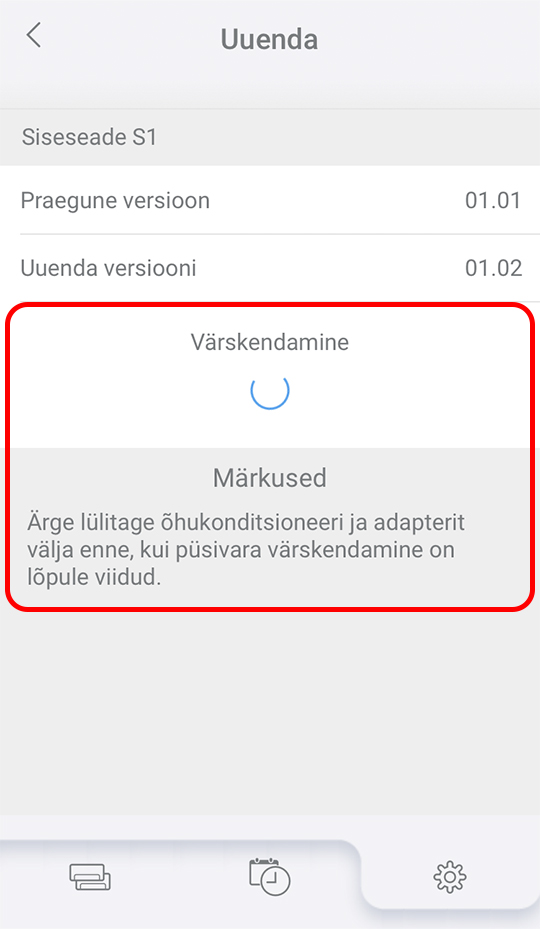 - Kliimaseadet ei saa uuendamise ajal kasutada.