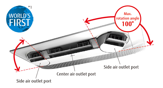 La configuración Confortable del flujo de aire permite que los puertos de salida de aire derecho e izquierdo, así como el puerto central ancho, funcionen juntos para proporcionar un ambiente agradable en la habitación.