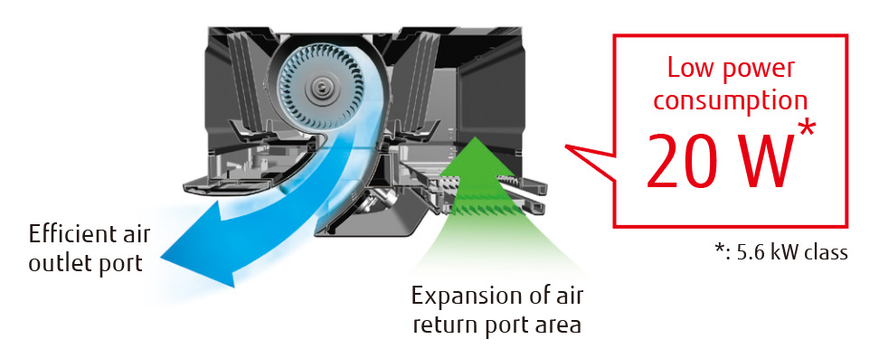 El diseño estructural para extraer un mayor volumen de aire y expulsarlo con mayor suavidad reduce la pérdida de aire y consigue el mejor rendimiento de ahorro de energía de su clase.