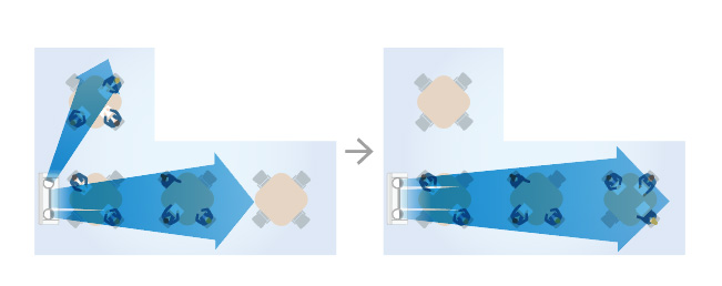 La función de ajuste individual del flujo de aire optimiza la dirección del flujo de aire para que se adapte a la distribución de la estancia.
