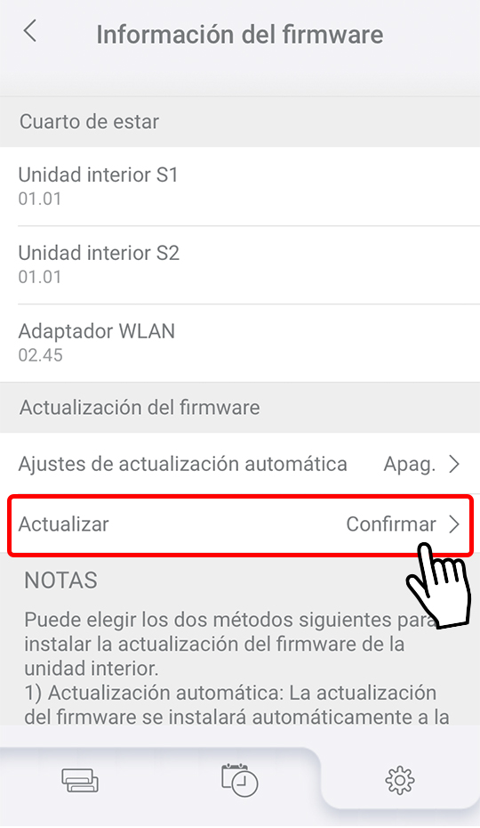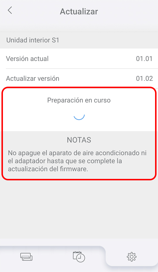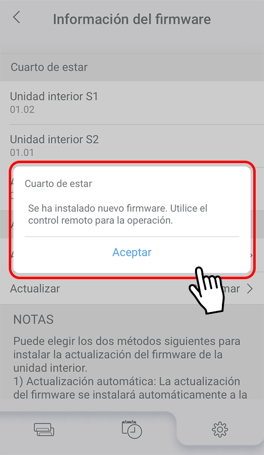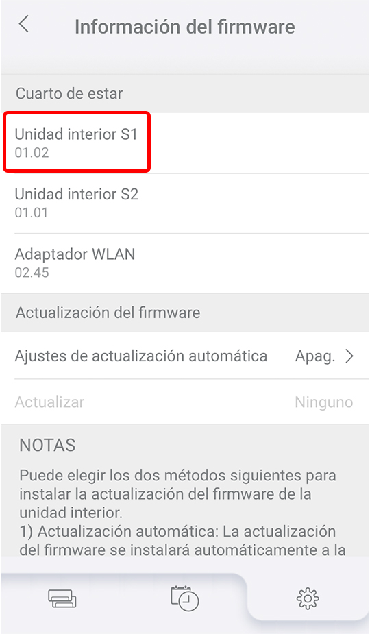 - Se actualizará el firmware de la unidad interior S1.