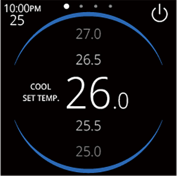 - UI: Swipe up/down, left/right Up/down: Adjust the setting (e.g., temperature) up or down Left/right: Scroll through the settings